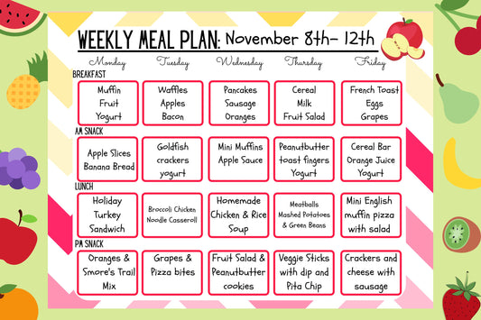 Editable Daycare Meal Planner | Childcare Menu Planner | Home Daycare Menu Template | 8 Colorful Fruity Designs | Childcare Printable