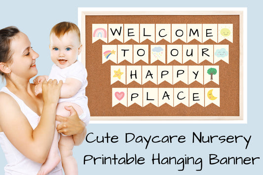 Daycare Nursery Printable Banner | Welcome to Our Happy Place | Childcare | Private Daycare | Preschool Classroom Decor | Day Care Bedroom