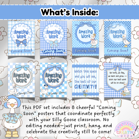 Coming Soon Posters for Student Work – Blue Gingham Goose Decor