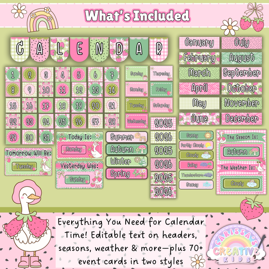 Editable Goose-Berry Classroom Calendar Printable with Weather & Seasons Cards for Preschool & Daycare