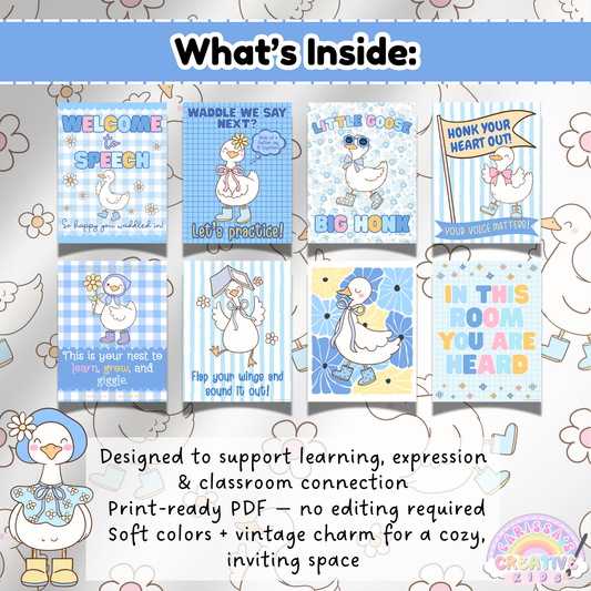 Silly Goose Speech Therapy Posters – Printable SLP Classroom Decor for Kids