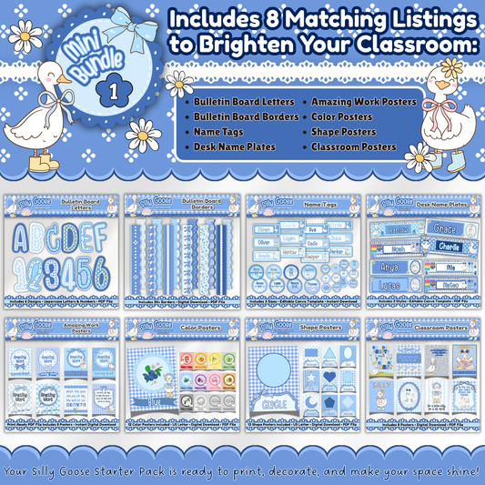 Silly Goose Bulletin Board Borders | Blue Gingham Printable Classroom Decor
