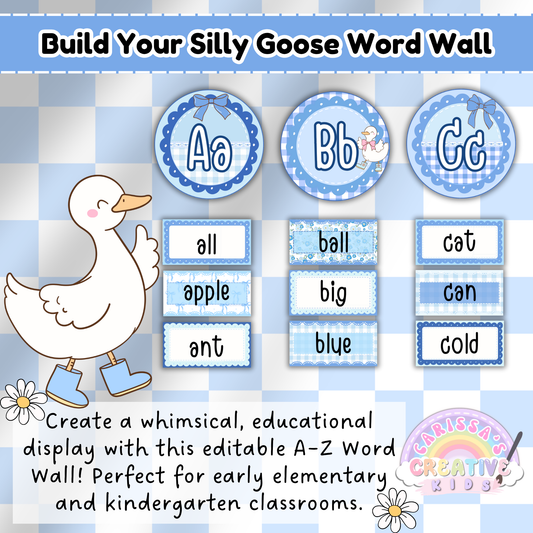 Editable Word Wall Display – A–Z Alphabet Cards + Word Labels – Silly Goose Classroom Decor