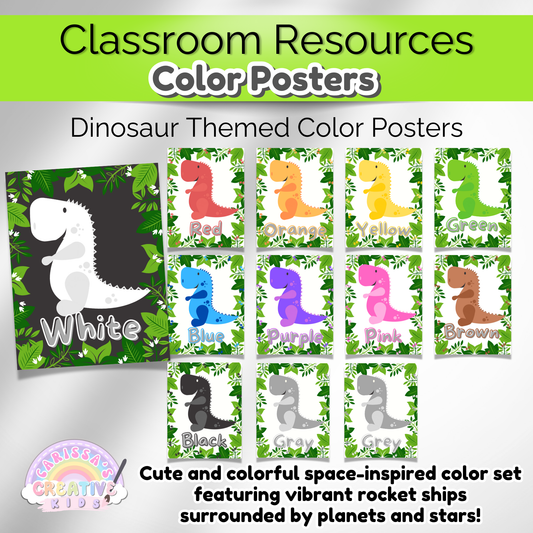 Dinosaur Theme Color Posters Daycare Classroom Decor | Prehistoric Preschool