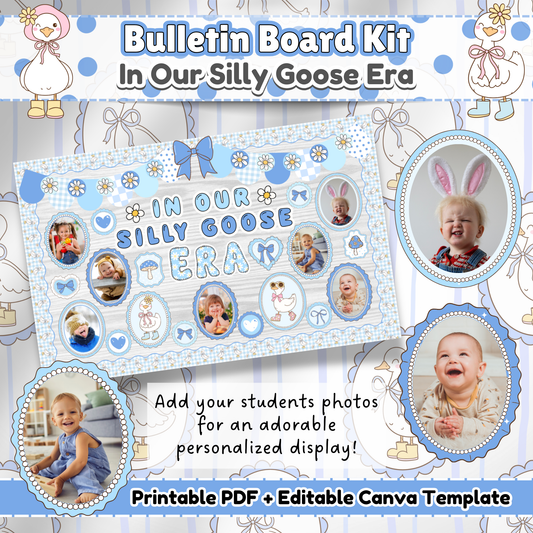 Vintage Retro Blue Ribbon Country Goose Bulletin Board Kit | Silly Goose Spring Classroom Decor