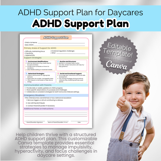 Daycare Forms ADHD Support Plan | Preschool Classroom Management