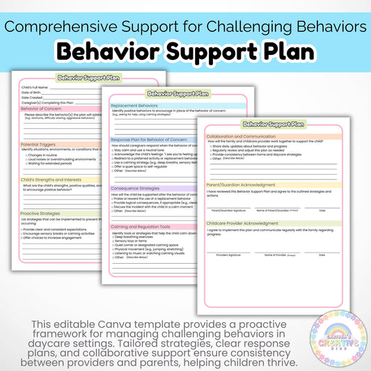Behavior Support Plan for Daycare | Preschool Behavior Forms