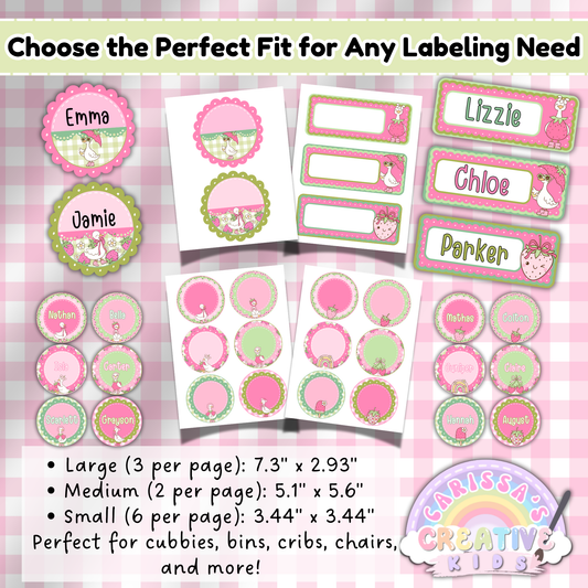 Goose-Berry Editable Name Tags for Preschool & Daycare | Strawberry & Gingham Classroom Labels