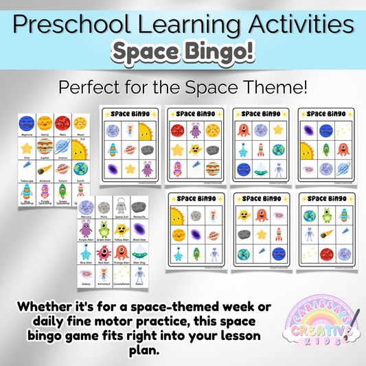 Preschool Outer Space Bingo Game! Practice Fine Motor Skills in a Daycare