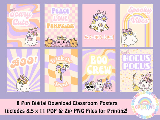 Retro Cute Halloween Classroom Posters | Pastel Bulletin Board Kit | Preschool | Daycare | Halloween Classroom Decor | Fall Bulletin Board