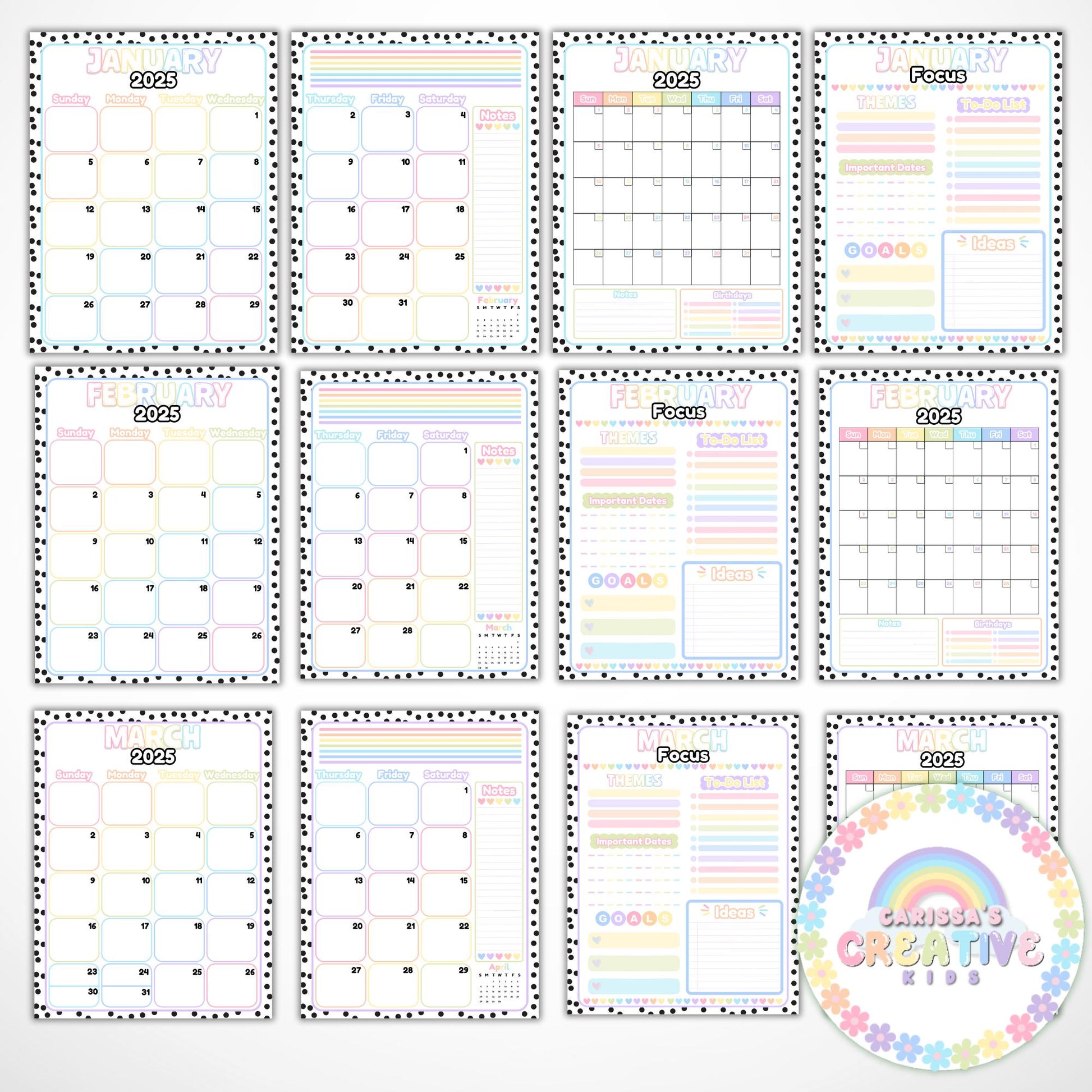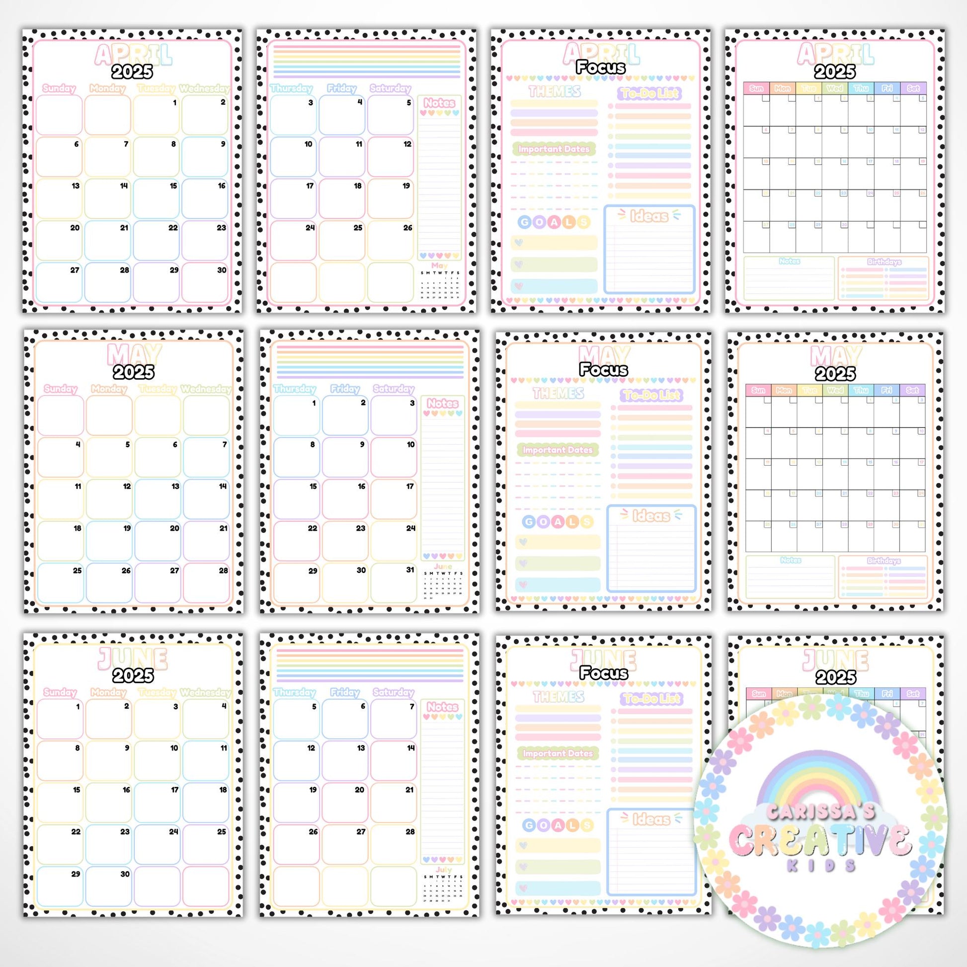 Organize your year with this charming 2025 printable calendar! Make planning fun, easy, and beautiful with this unique pastel planner designed especially for educators and organizers. Download, print, and start planning today!