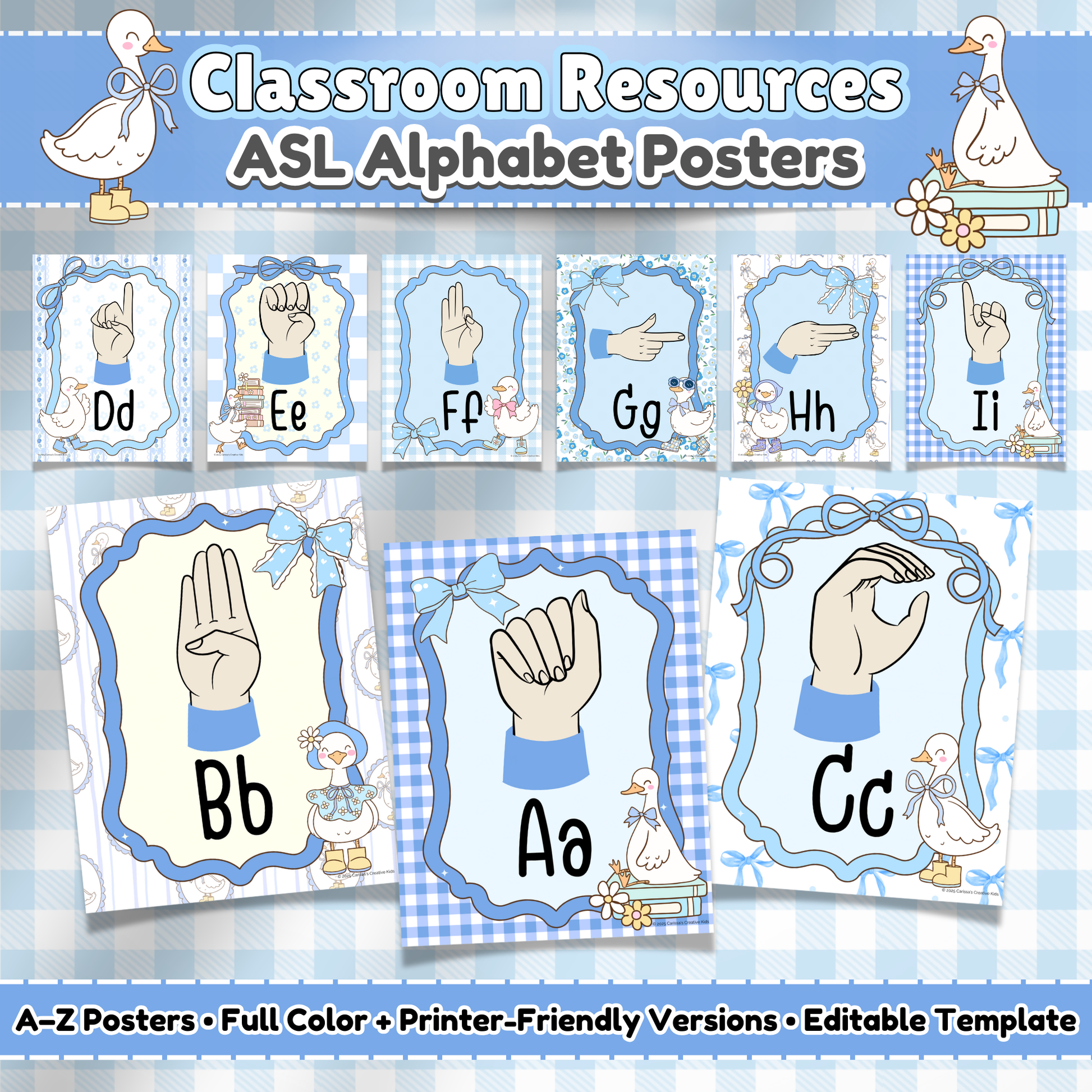 🩷 ASL Alphabet Posters – Silly Goose Classroom Decor (Editable Canva Template)