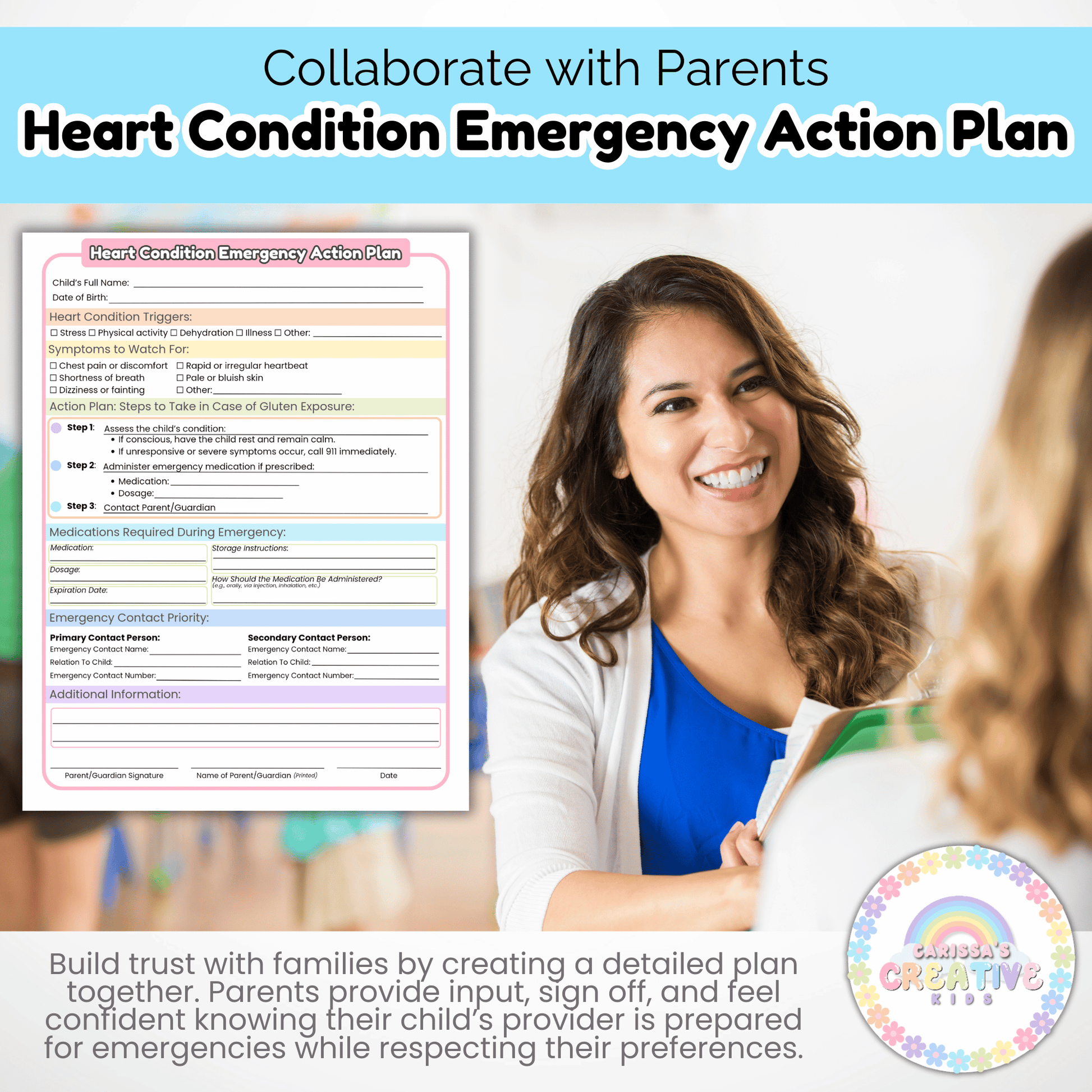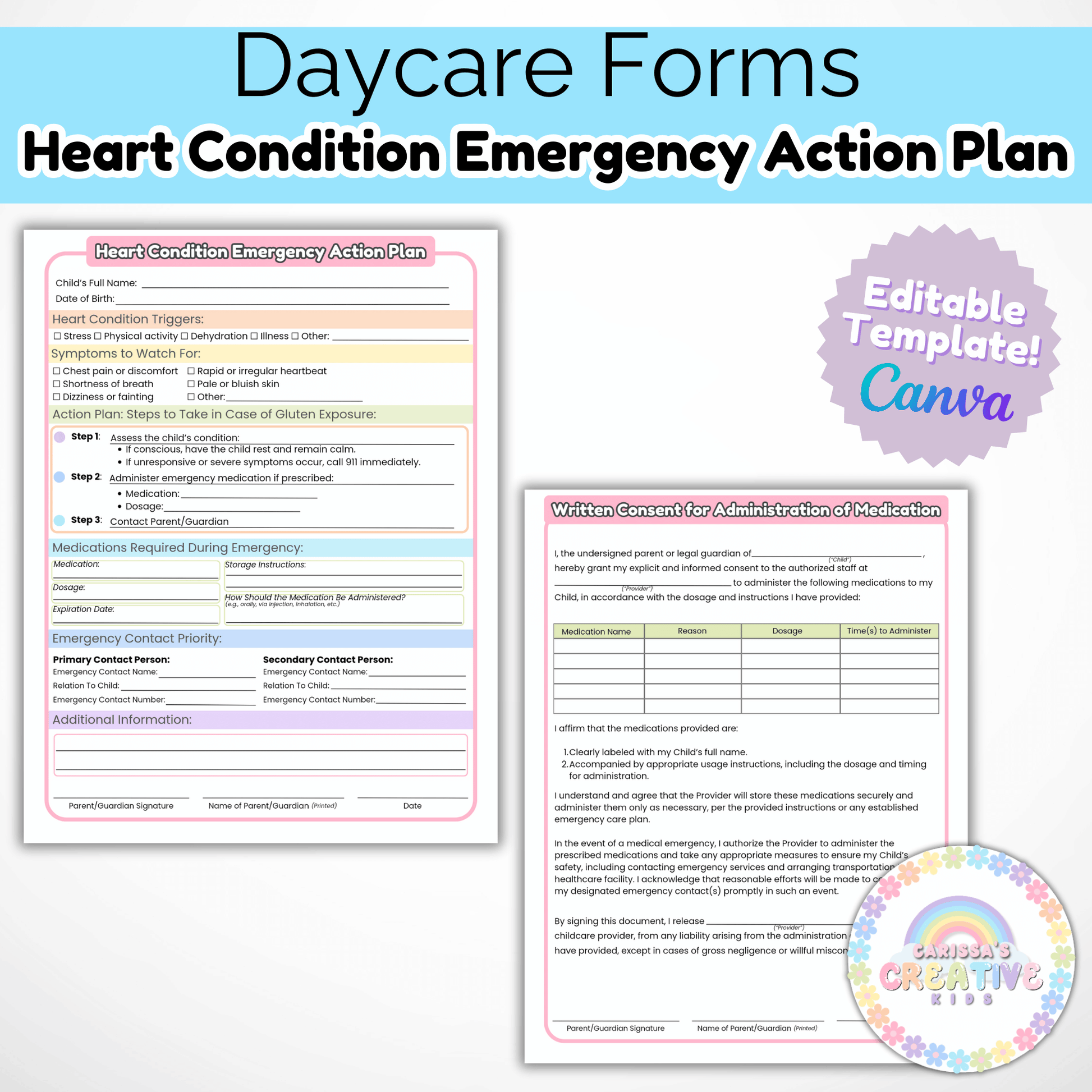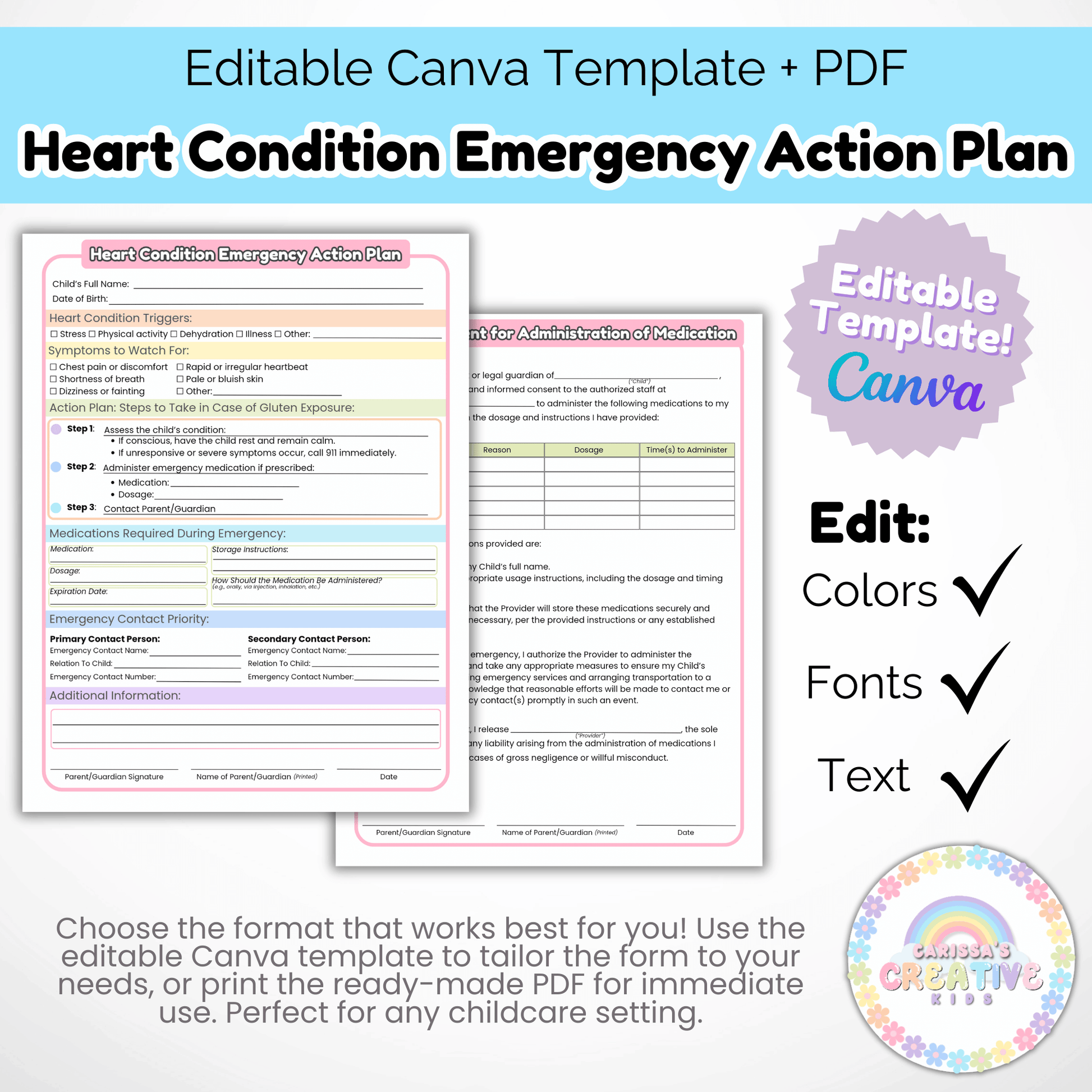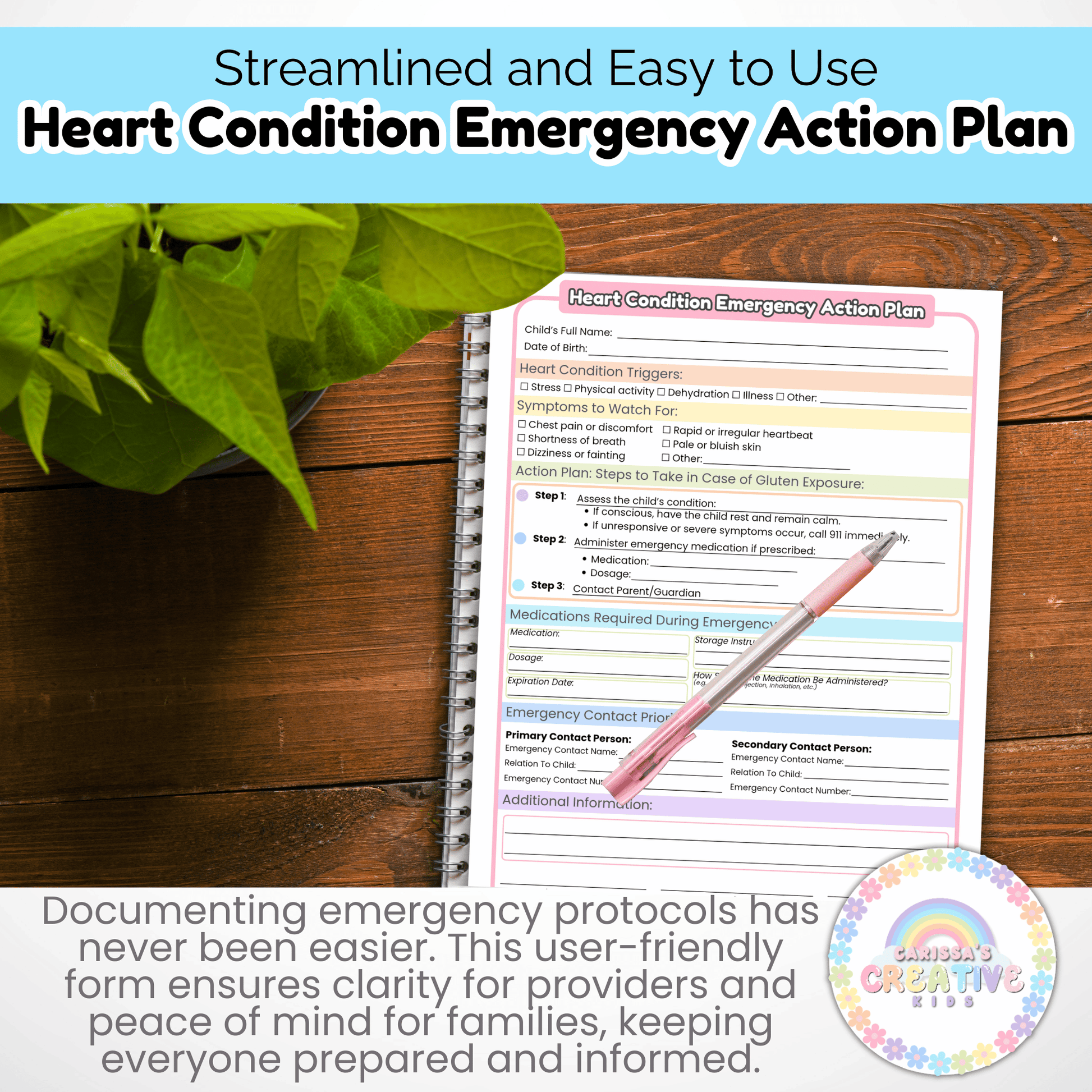 Daycare Forms- Heart Condition Emergency Action Plan Editable Template