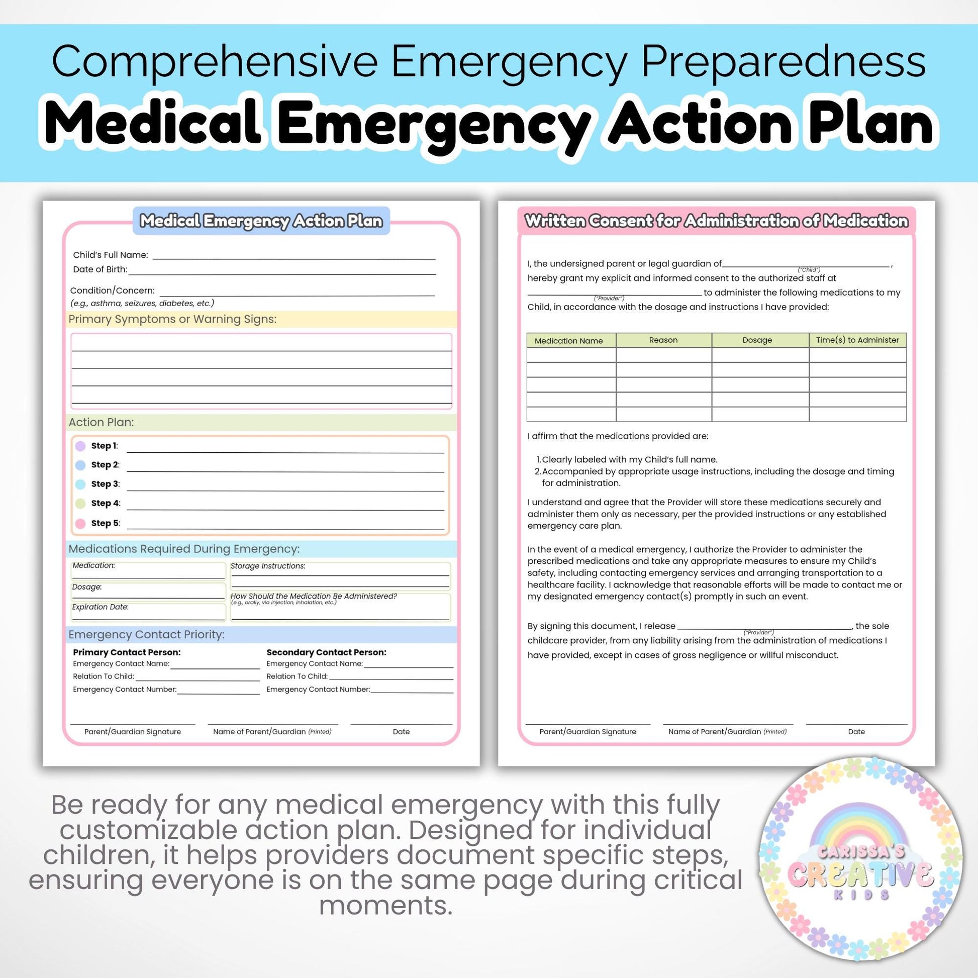 Daycare Forms- Medical Emergency Action Plan | Childcare Emergency Preparedness Medical Forms & Consent