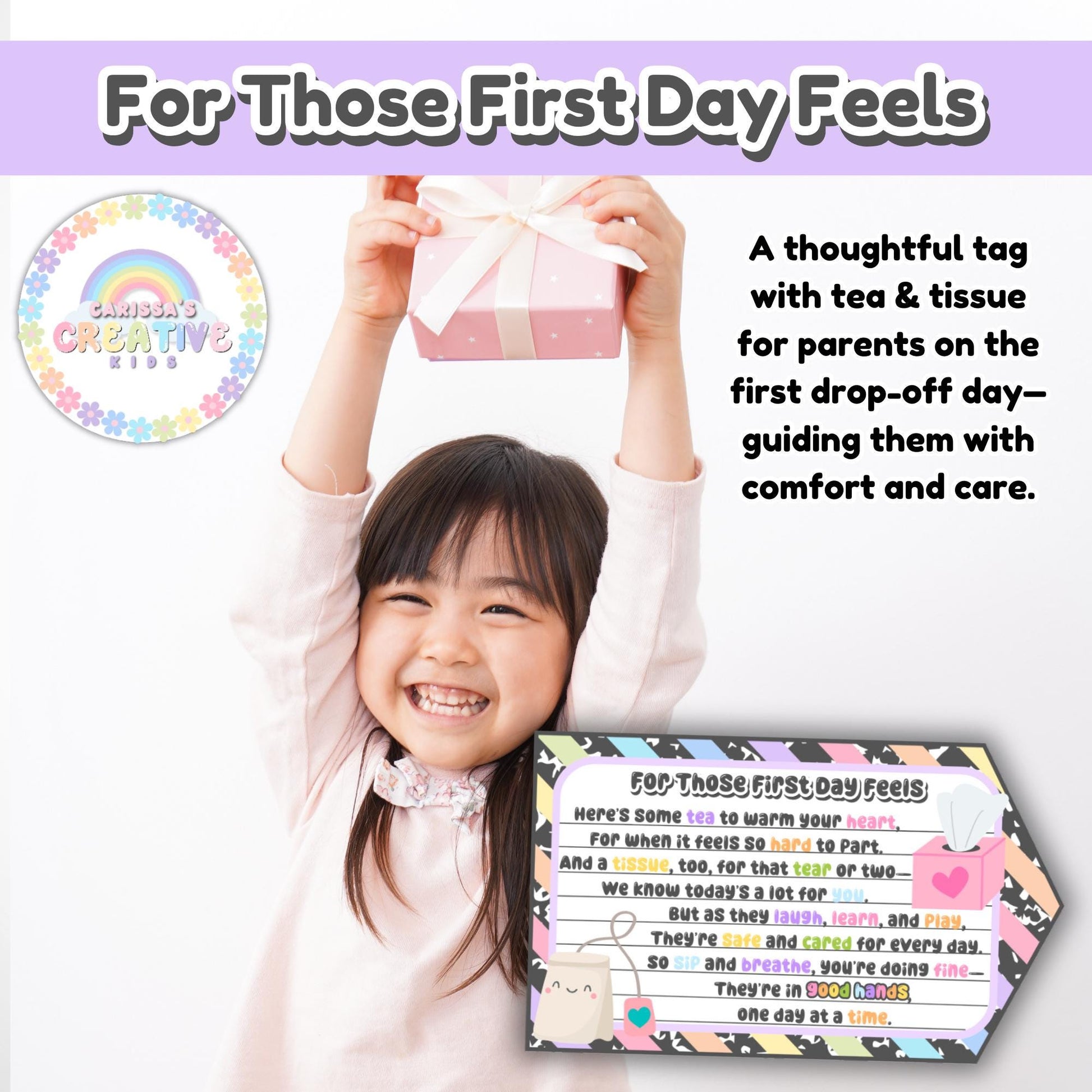 Help make the first day a little easier with this comforting parent gift tag—perfect for daycare providers, preschools, or teachers to give parents during that emotional first drop-off. Each tag features a heartfelt poem and space for a small tea bag and tissue, offering reassurance and warmth to parents entrusting their child to your care.