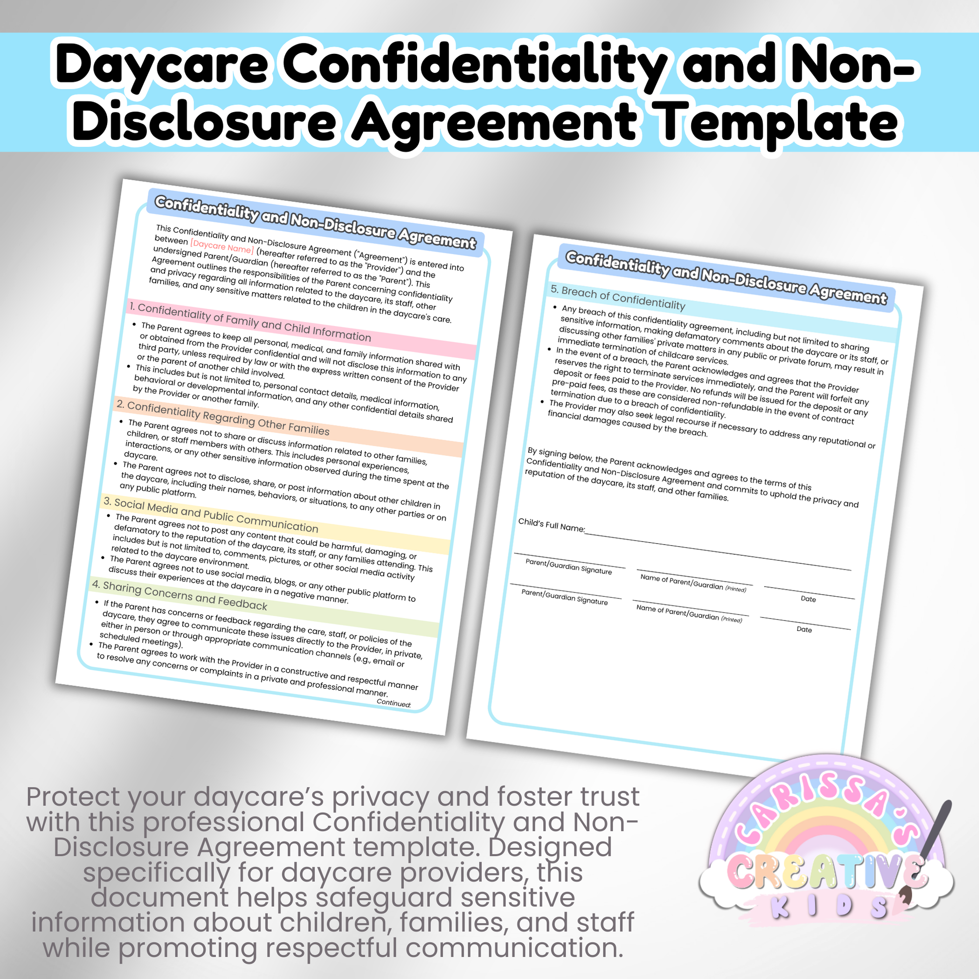 This template helps protect your daycare’s privacy, foster trust, and establish clear communication with families—all in a professional and polished format.