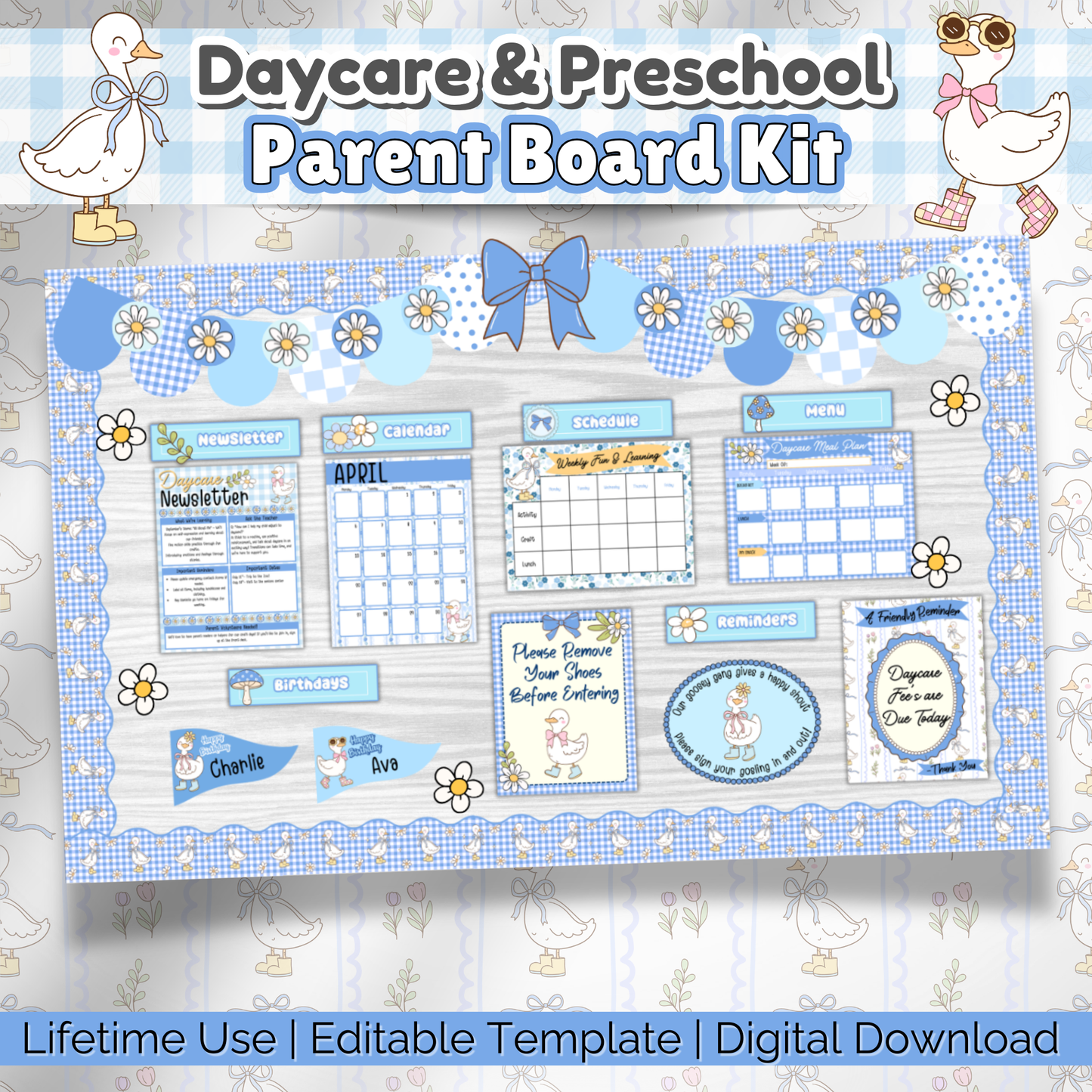 Silly Goose Editable Parent Board Kit | Daycare Bulletin Board | Preschool Printable Decor | Retro Country Goose Childcare Classroom Decor